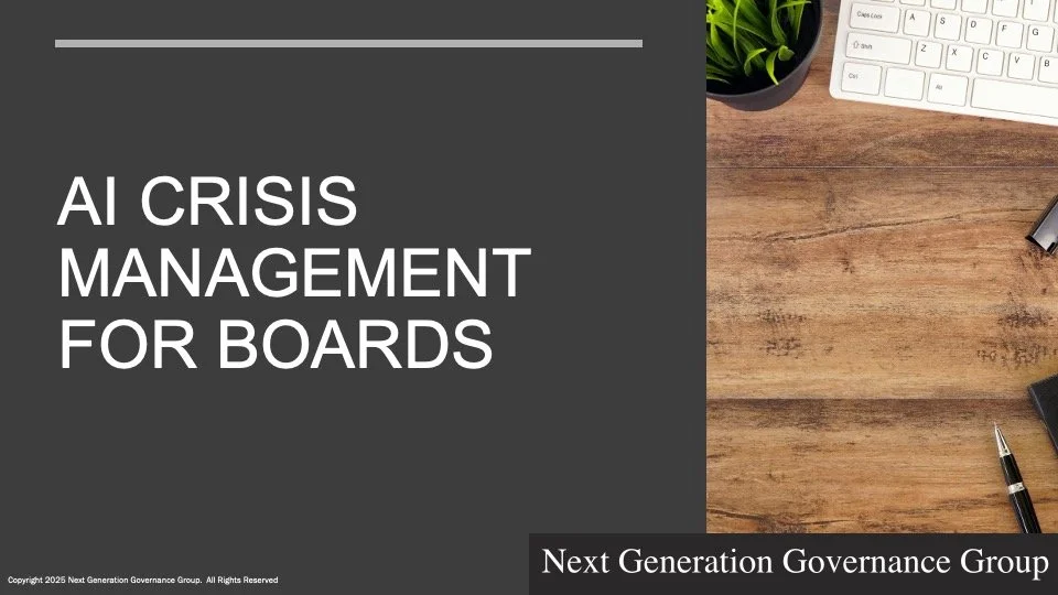 Next Generation Governance Group’s AI Learning Track equips directors and executives to oversee AI responsibly—covering lifecycle governance, bias, transparency, and strategic alignment. Participants learn how to evaluate AI risk, performance, and value creation, ensuring accountability and trust in enterprise AI adoption.