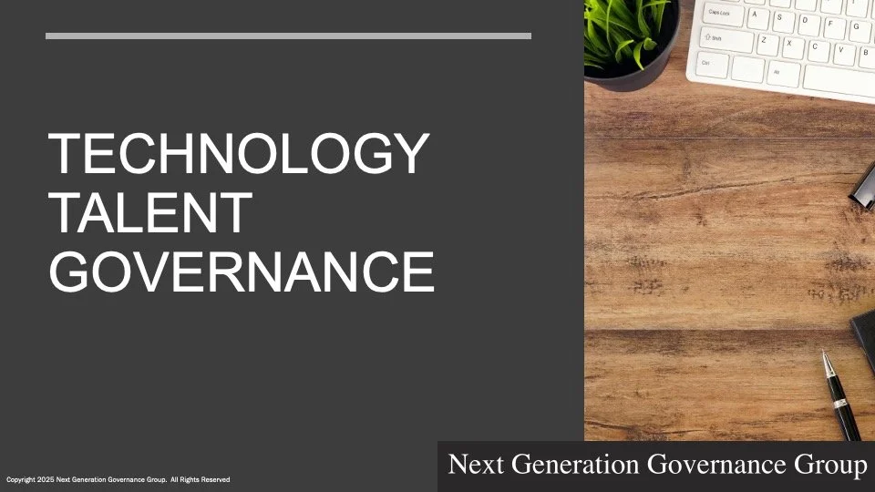 Next Generation Governance Group’s Talent Learning Track helps boards and leaders align digital talent strategy with transformation goals. It focuses on upskilling, leadership pipelines, and AI-era workforce design—ensuring governance over skills, ethics, and organizational agility in an increasingly automated and data-driven environment.